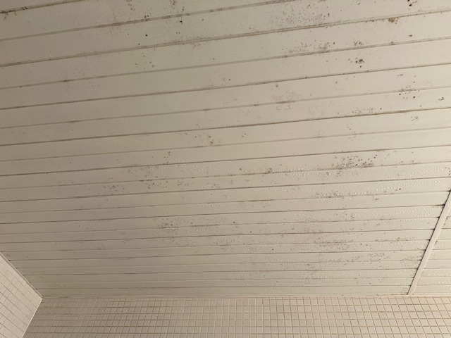 こちらは作業前の状態です。天井にビッシリとカビが生えている状態でした!