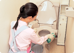 尿石や黄ばみ、黒ずみ、カビなど、普段のおそうじではなかなか落とし切れないガンコな汚れをすっきりキレイに取り除きます。最後にしっかり除菌して、汚れがつきにくいトイレに仕上げます。
