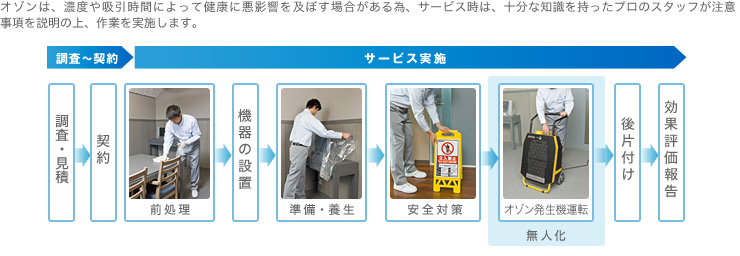- ※ニオイの強さ、エリアの広さ、オゾン脱臭・除菌機の運転時間、ニオイを取り除く清掃作業の実施よって別途料金が必要になる場合があります。