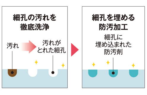 専用パッドで汚れをスッキリ洗浄し、防汚加工で、日常清掃の負担も軽減できます。