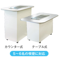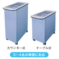 オフィスやビル、施設、店舗での「分煙対策」の必需品。強力な吸引力でタバコの煙を吸い込み、タバコの不快なニオイも抑えてくれます。テーブル式とカウンター式をご用意しました。